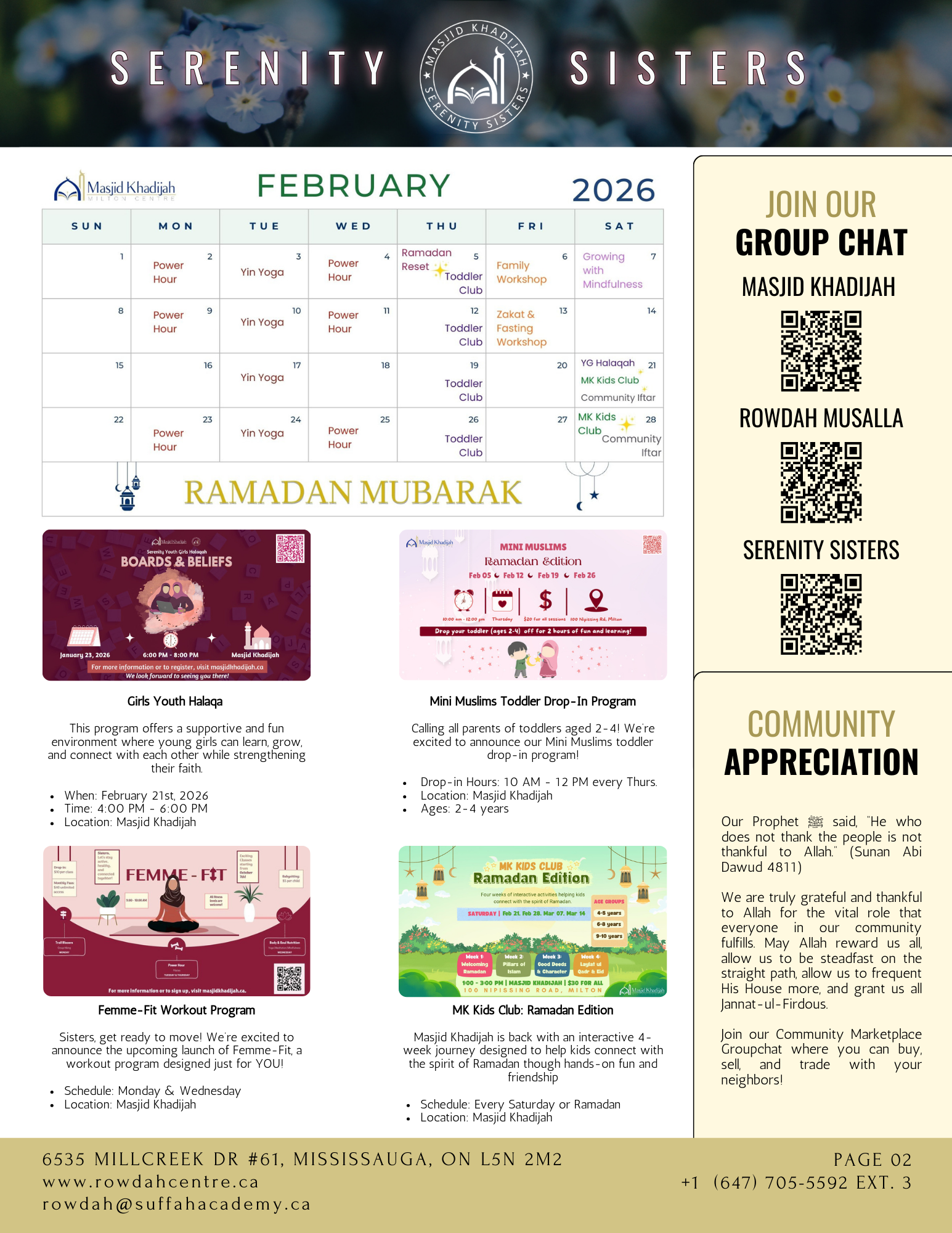 Serenity Sisters Programs